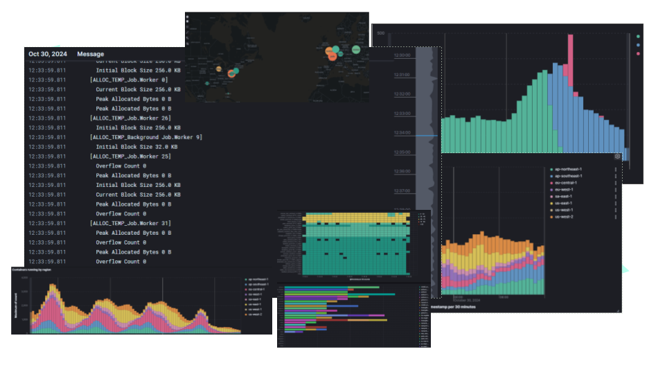 • Stream logs live to catch the first onset of degradation and correlate it with resource behavior.